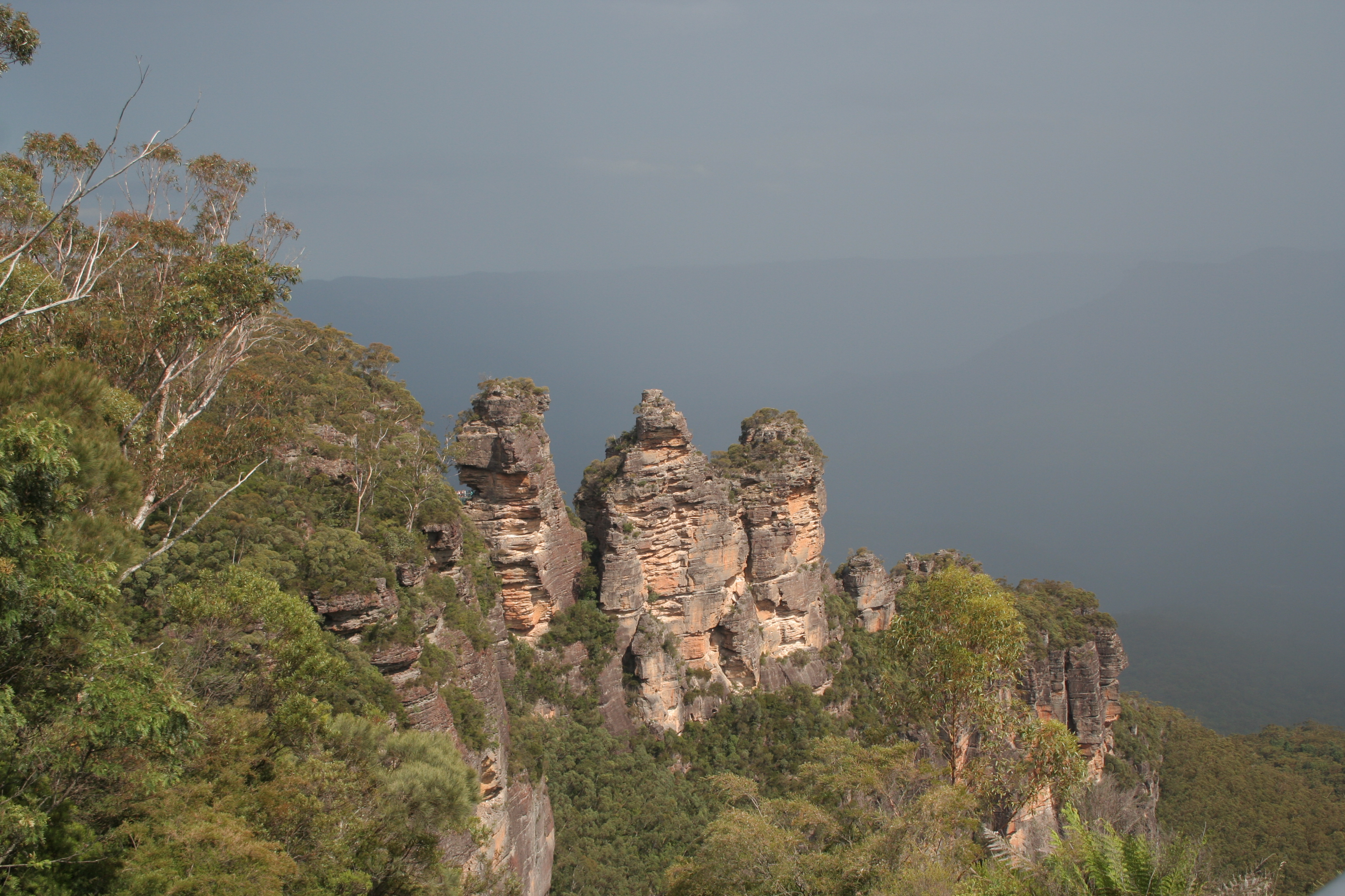 Après cette marche de 2h où nous avons pu voir de belles fleurs sauvages, des lézards et un python; nous partons pour Katoomba et Leura. Gordon Falls situé à Leura, donne également une magnifique vue après une courte marche à pied. Le payasage est fait de forêts à perte de vue, et tout comme à Blackheath, il n’y a personne ! Ensuite, la vue depuis Sublime Point à Leura vaut le détour, c’est étourdissant ces vues !! On aperçoit d’ici les « Three Sisters », 3 rochers juxtaposés très populaires pour leur forme originale. On se rend donc à Katoomba pour les voir de plus près, mais l’orage est au rendez-vous. Il s’éclipse juste un instant pour nous permettre de faire de jolies photos, mais il n’est plus question d’aller dans le canyon en contre-bas comme nous l’avions prévu. De plus, ce point de vue là est un dépose minutes pour touristes asiatiques en bus, et le point de vue est plein à craquer, cela ne nous donne pas envie de rester…