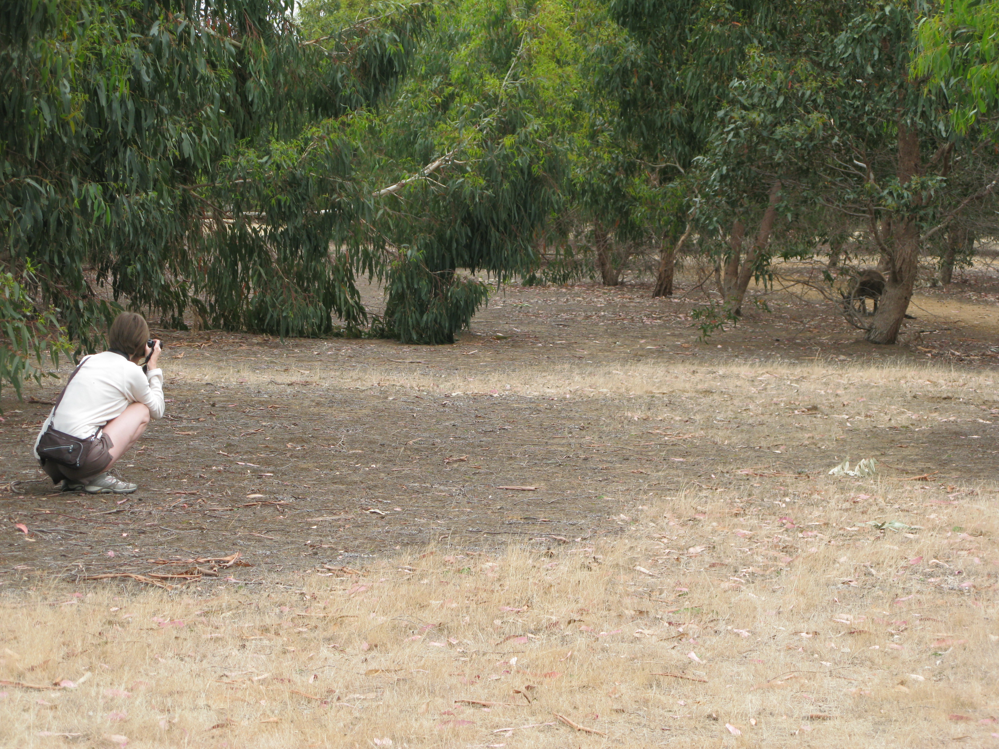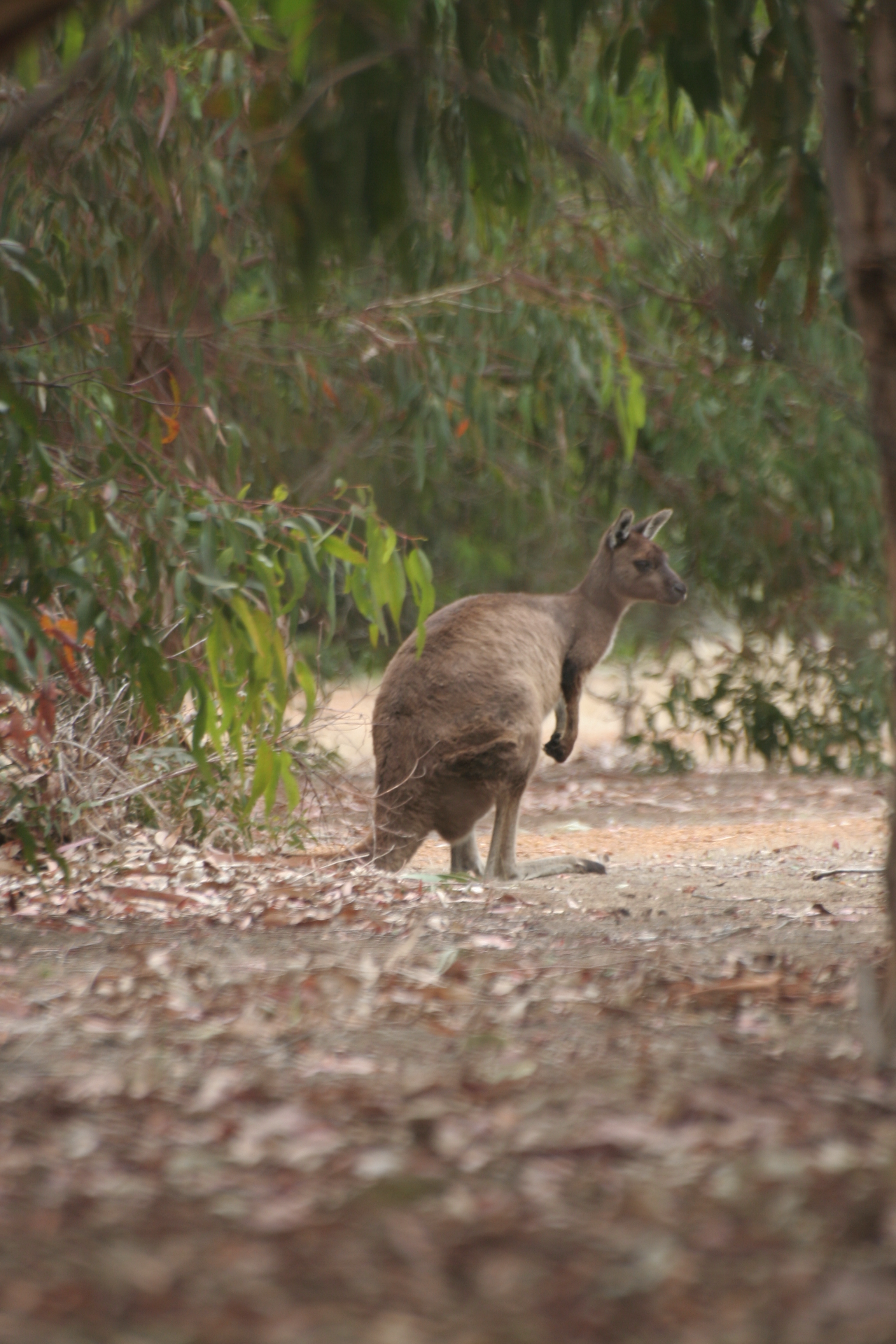 En fin d’après midi, nous allons nous promener autour du campement. Initialement parti à la chasse aux wombats (cousin éloigné du koala, ce gros marsupial creuse des terriers), nous tombons sur un superbe kangourou dont les oreilles nous laissent penser qu’il s’agit d’un cousin éloigné de Mickey Mouse !