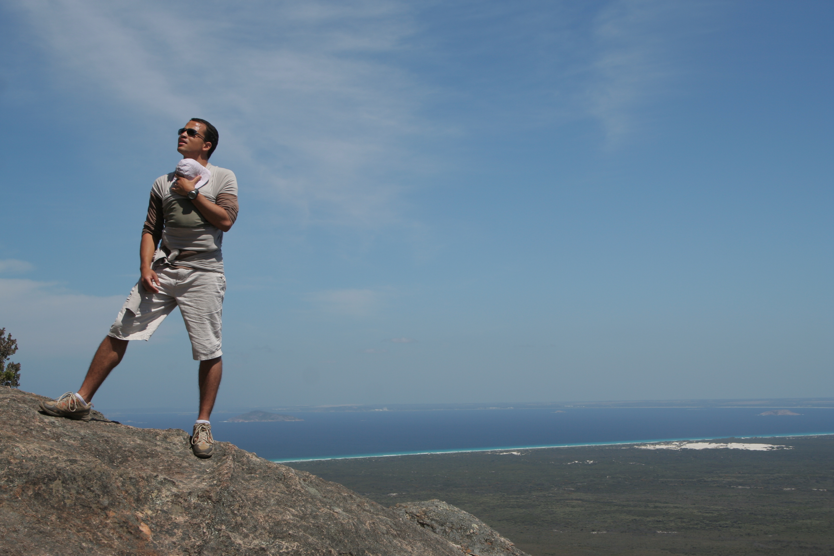 Le temps étant ensoleillé, la montée à travers les arbres est très agréable. La vue depuis le sommet est effectivement très jolie car elle donne sur les plages de sable blanc en contrebas. Mais le temps s’est couvert et nous avons un peu la tête dans les nuages.