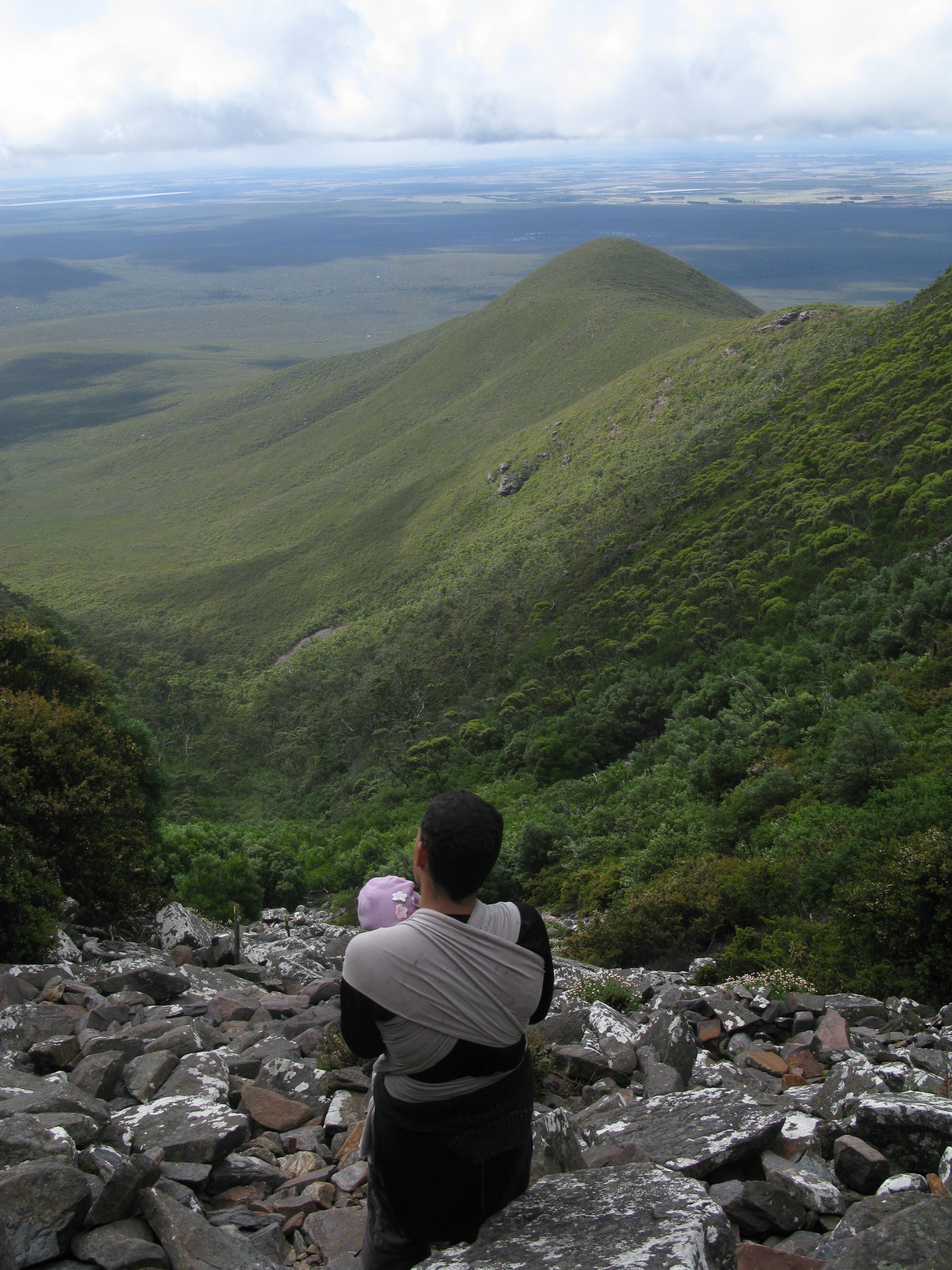 Nous partons sur le sentier de Pulpit Rock Track, qui passe par la forêt, longe les falaises, et qui est jalonné de très beaux points de vue. Nous profitons d’une pause allaitement pour Olivia, au niveau du Cripps Lookout qui nous donne une très belle vue sur les falaises et une cascade.
