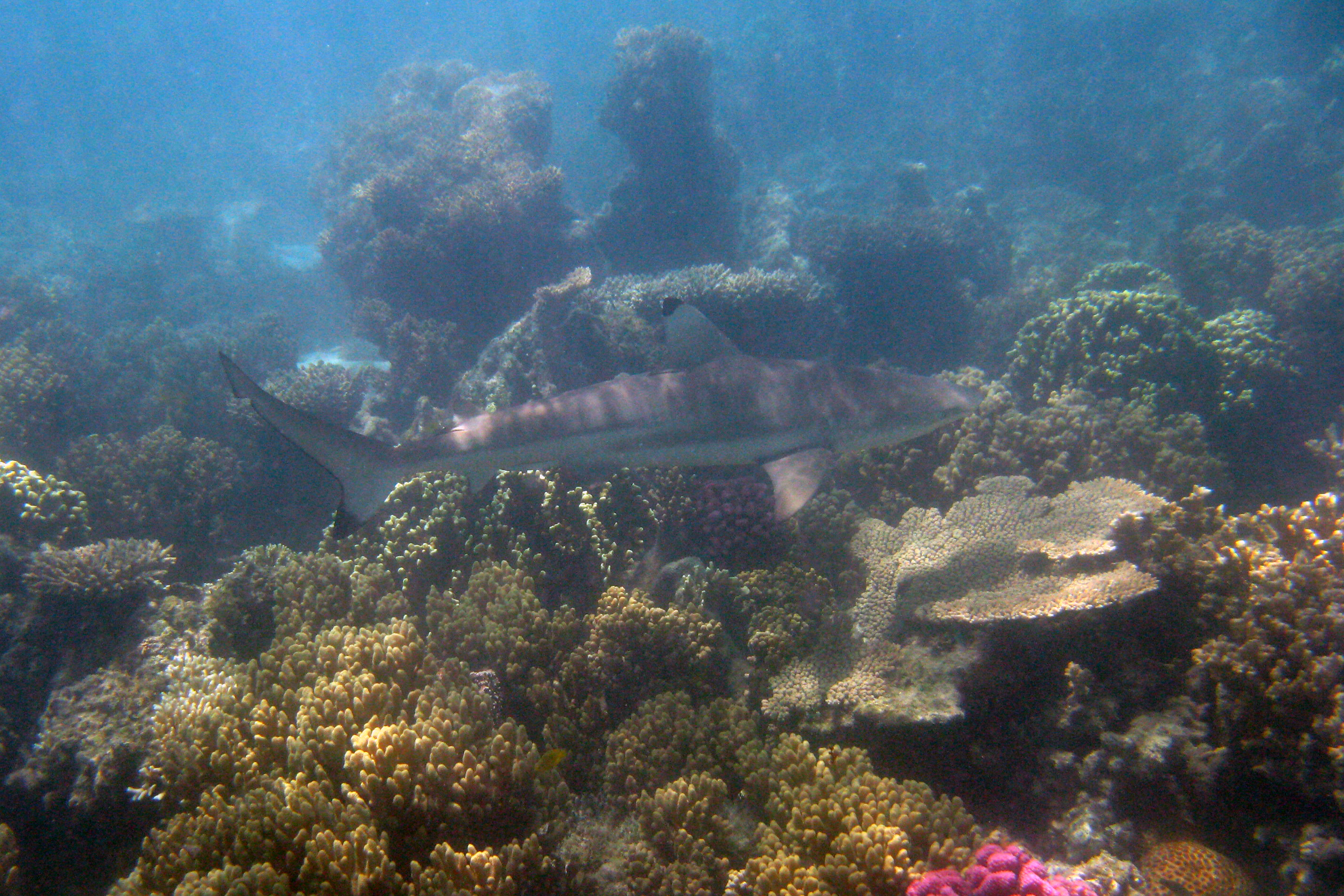 Lors de la deuxième plongée de la journée, direction le « Canyon ». Coup de chance, deux requins des récifs ont bien voulu se montrer !