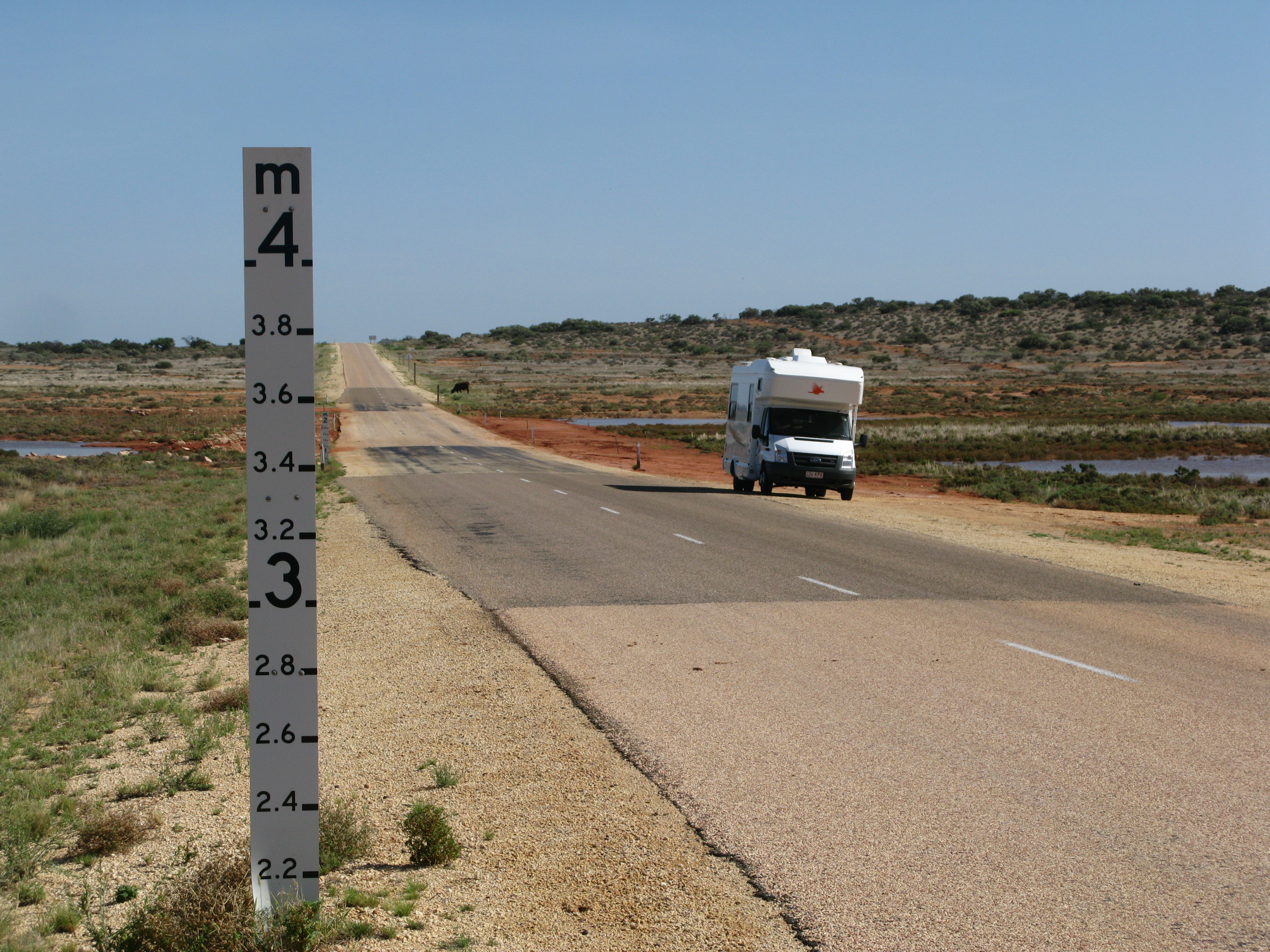 Nous continuons notre descente en direction de Perth. L’objectif aujourd’hui est d’arriver à Neren-Neren. Il s’agit d’une aire de repos située sur la Murchison River qui se jette dans la mer au niveau de Kalbarri. Lors de notre passage en allant vers Coral Bay, cette aire nous avait fait une bonne impression : une rivière, de l’ombre et du calme : idéal pour y passer la nuit. Mais c’était sans compter sur les pluies diluviennes et les inondations !
