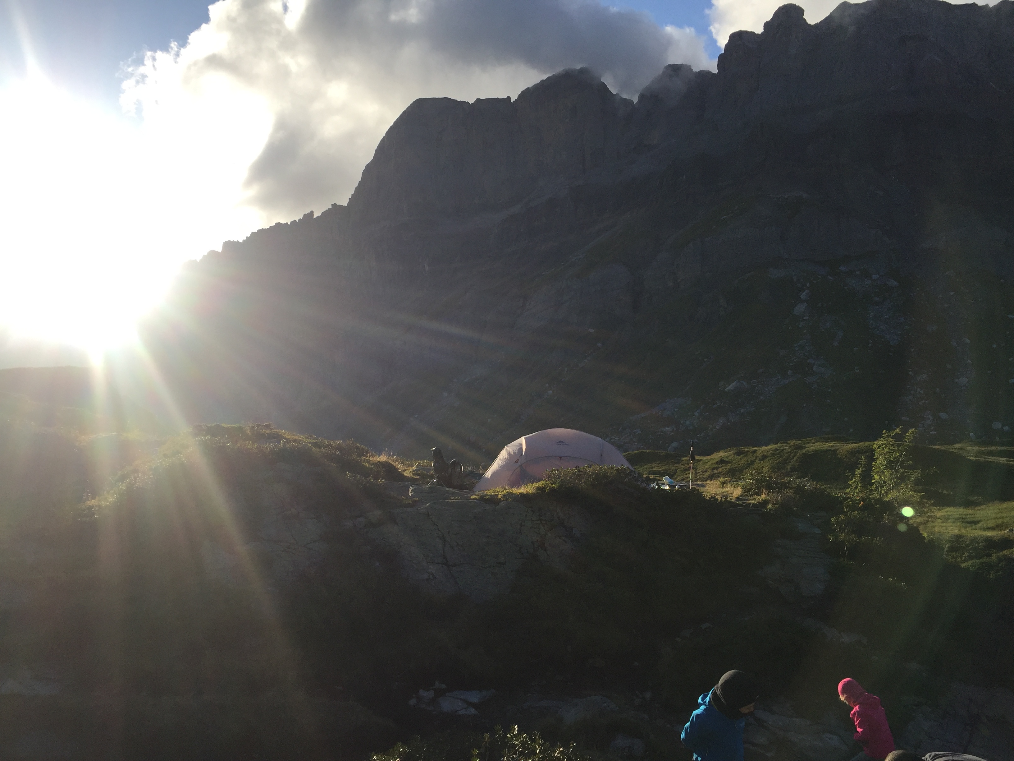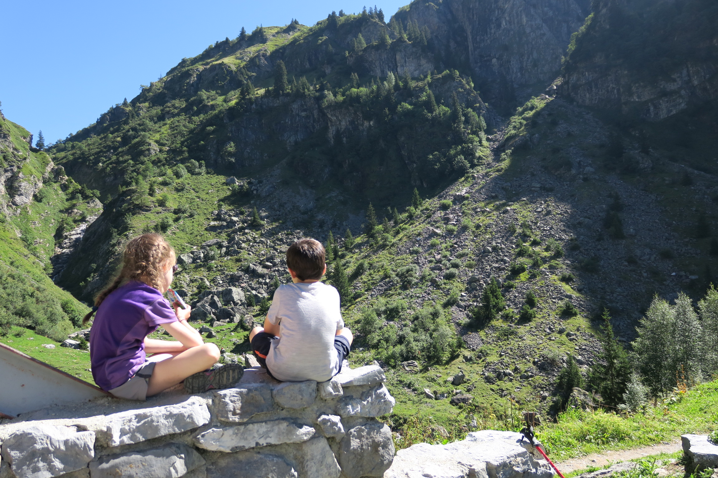 Ensuite après avoir traversé le torrent du SOuay, il faut se diriger vers le refuge de Moede-Anterne. La fatigue se fait sentir, les sacs se font lourds ! Nous arrivons en fin d’après-midi au Lac d’Anterne et il est déjà temps d’installer la tente. Les enfants profitent de jouer à l’extérieur jusqu’à ce que le soleil se cacher !