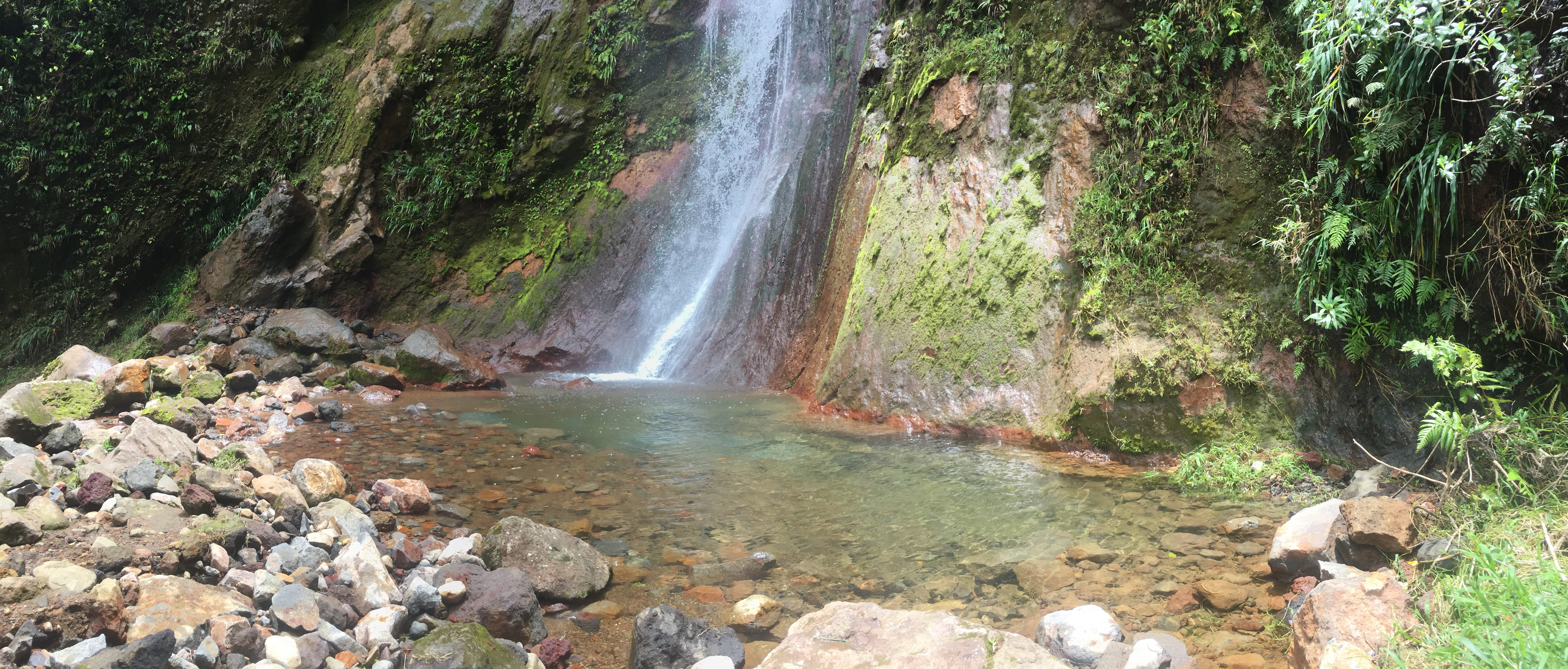 La chute du Galion, au pied de la soufrière sur la commune de Saint-Claude, vous offrira un magnifique spectacle : une chute de 40m de hauteur dans un écrin de verdure. Elle se mérite : elle est assez courte (2h30, 4km, 140m de dénivelée), mais présente quelques difficultés : terrain parfois très glissant, tronçons un peu boueux, et des cordes sur le dernier tronçon nécessitant un peu d’escalade.