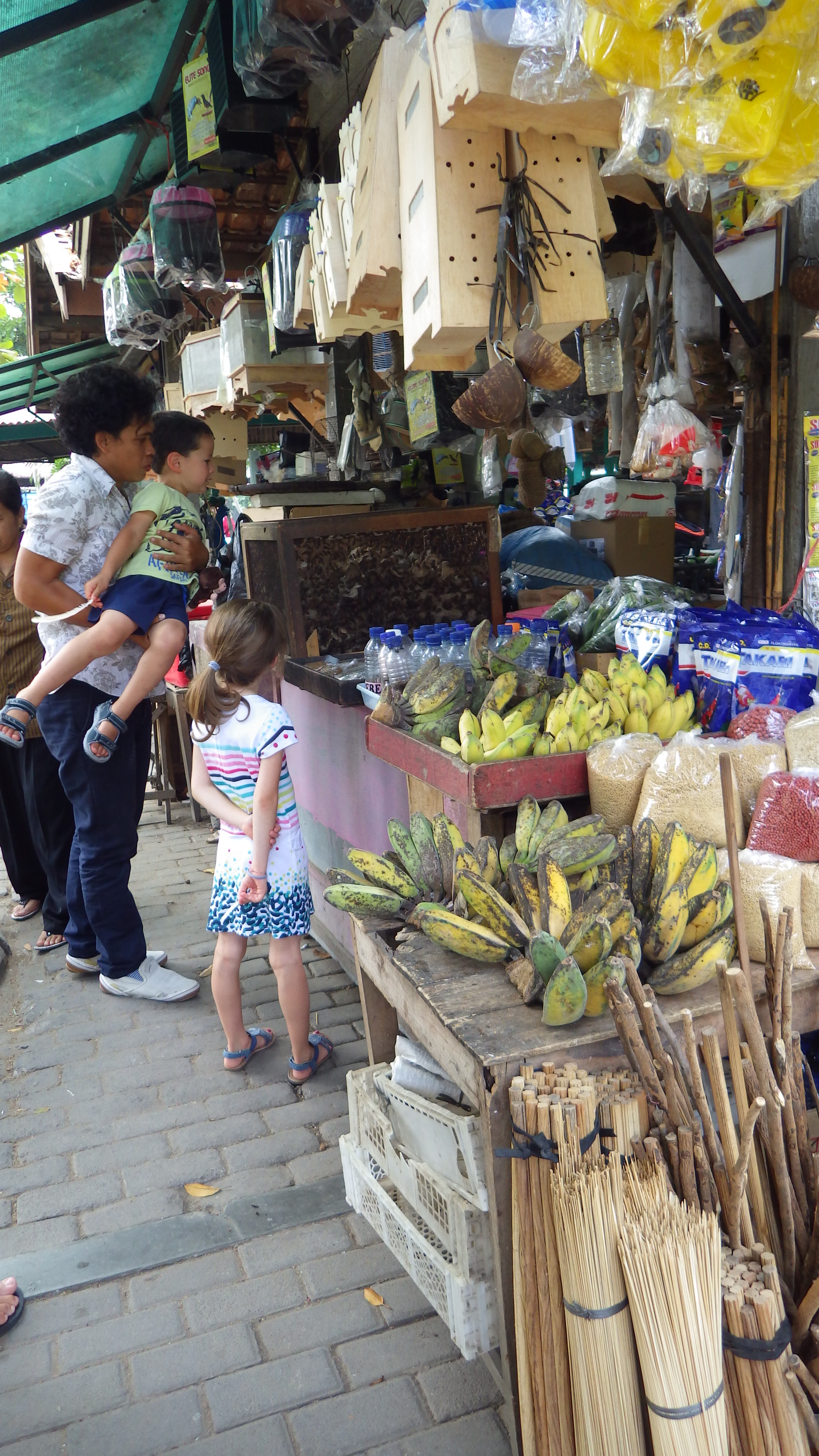 Jogjakarta est la capitale culturelle de l’île de Java. Dès notre arrivée sur place, le dépaysement est total. Nul magasin à l’occidental ici, mais des petits vendeurs à l’étalage sur les chemins et trottoirs : les enfants adorent ! Les marchés, plein de couleurs et de découvertes, font sensation. Le Pasar Ngasem, marché aux oiseaux, conquit les enfants ! Le Pasar Beringharjo, marché principal de la ville, offre de l’alimentation et des petites échoppes où déjeuner des mets locaux sur le pouce.