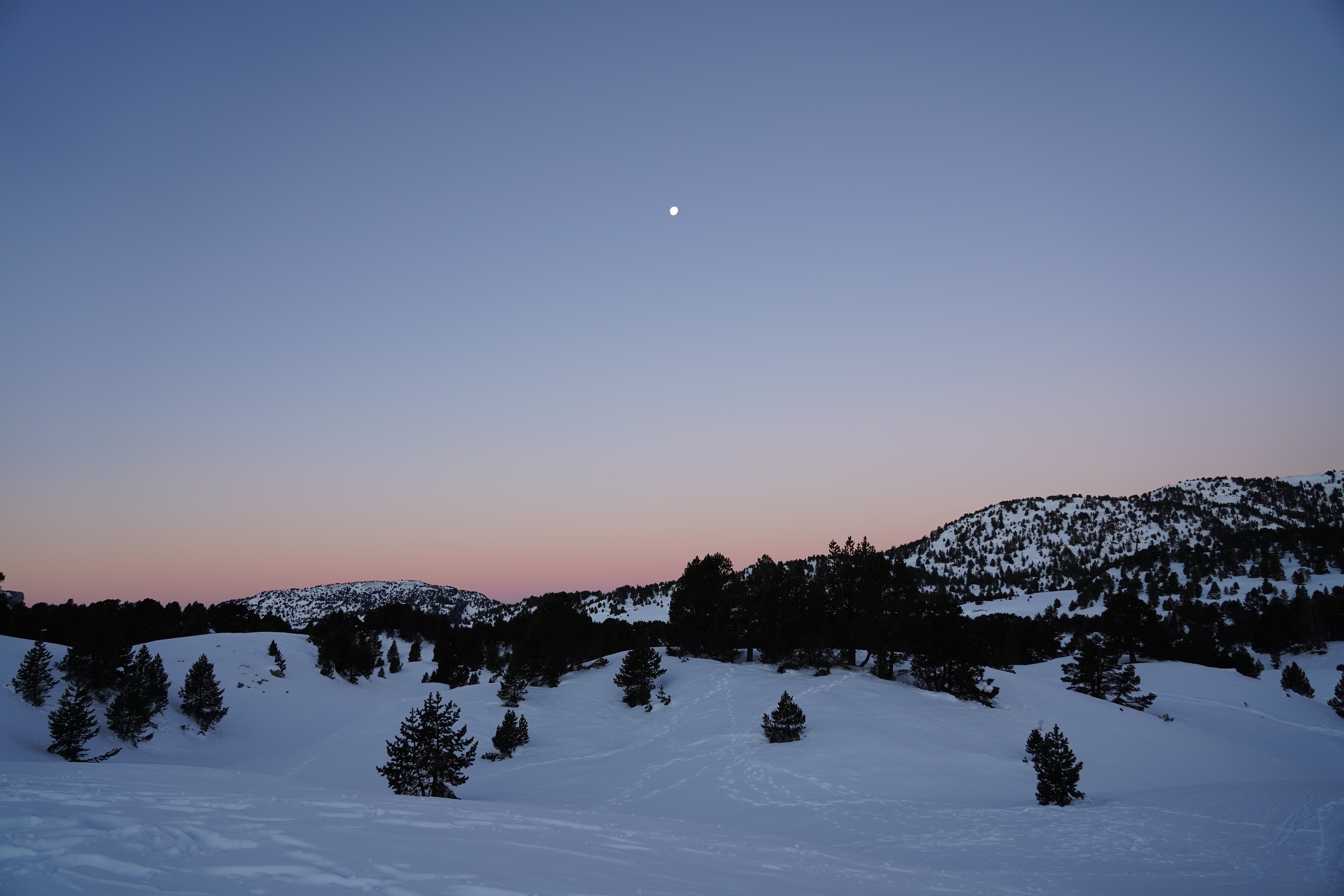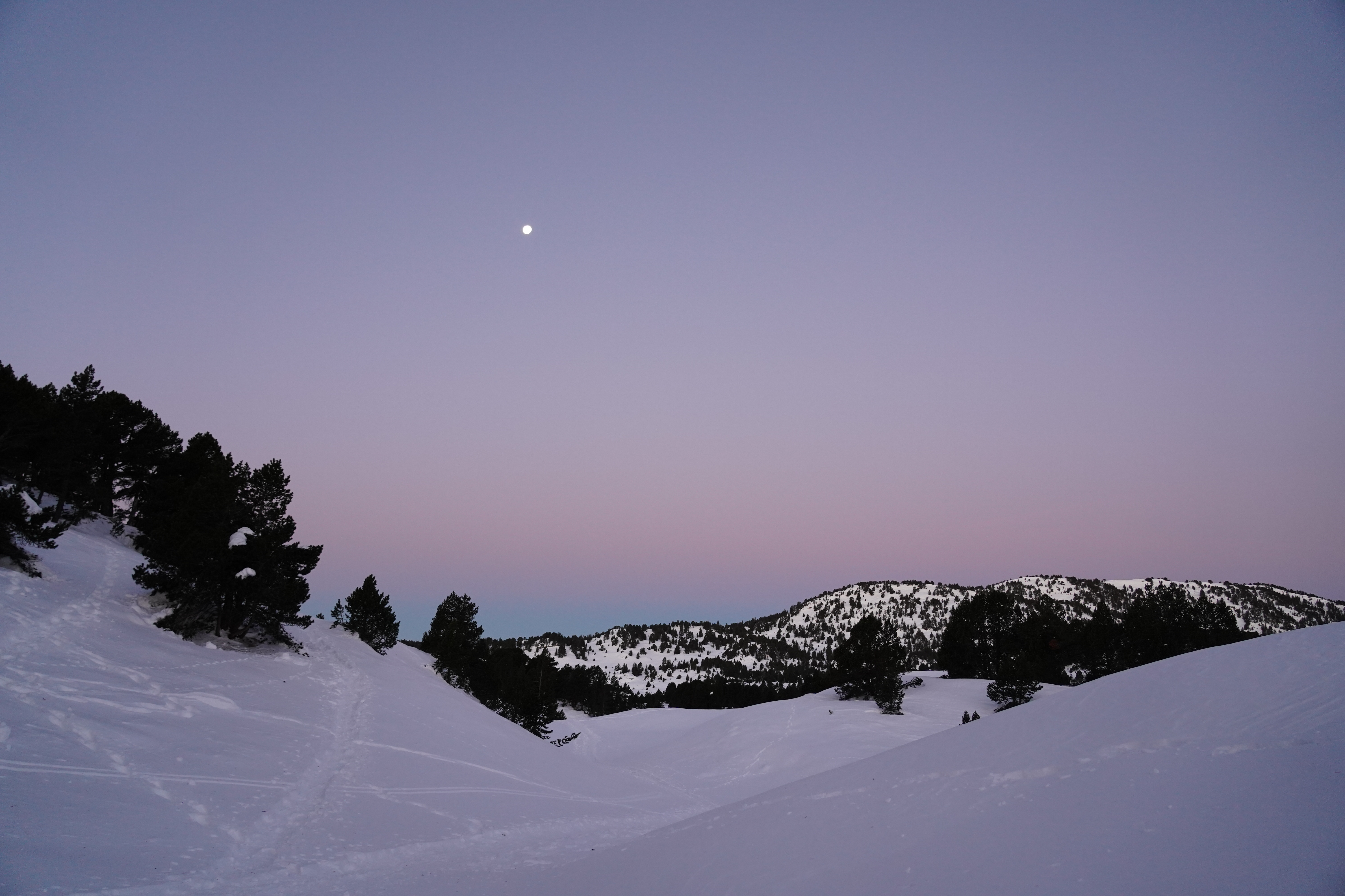 Au petit matin, nous nous réveillons. La nuit a été très chaude ! Il faut dire que nos duvets -10° alors qu’il devait faire 15° dans le chalet toute la nuit c’était probablement surévalué !! L’avantage à cette période est qu’il n’y a pas besoin de se réveiller aux aurores pour profiter des jolies couleurs du lever du soleil, qui ce jour-ci se levait à 8h13.