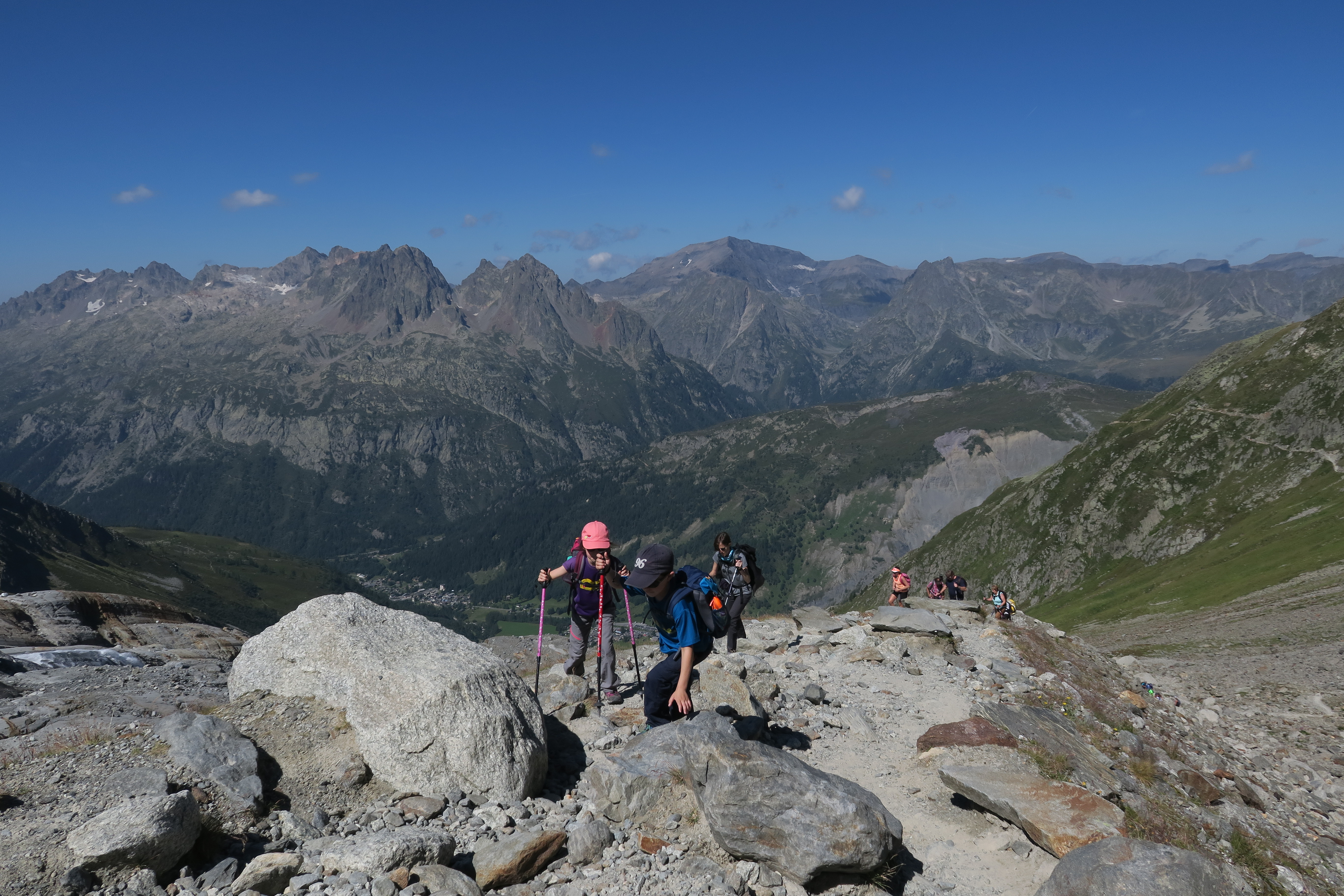 Le refuge Albert 1er est un refuge de haute-montagne, situé à 2702m, qui est très accessible au grand public et notamment en famille. Il est d’une grande capacité (environ 140 personnes) et son accès assez « grand public » grâce aux remontées mécaniques font qu’il est assez prisé des randonneurs à la famille. Malgré tout, il est l’occasion de tester une nuit en refuge dans un environnement de haute montagne, ou tout simplement sur une journée d’aller observer de très près un glacier. En effet, la randonnée à elle seule vaut le détour car elle permet d’embraser de très beaux panoramas, puis de longer le glacier du Tour.