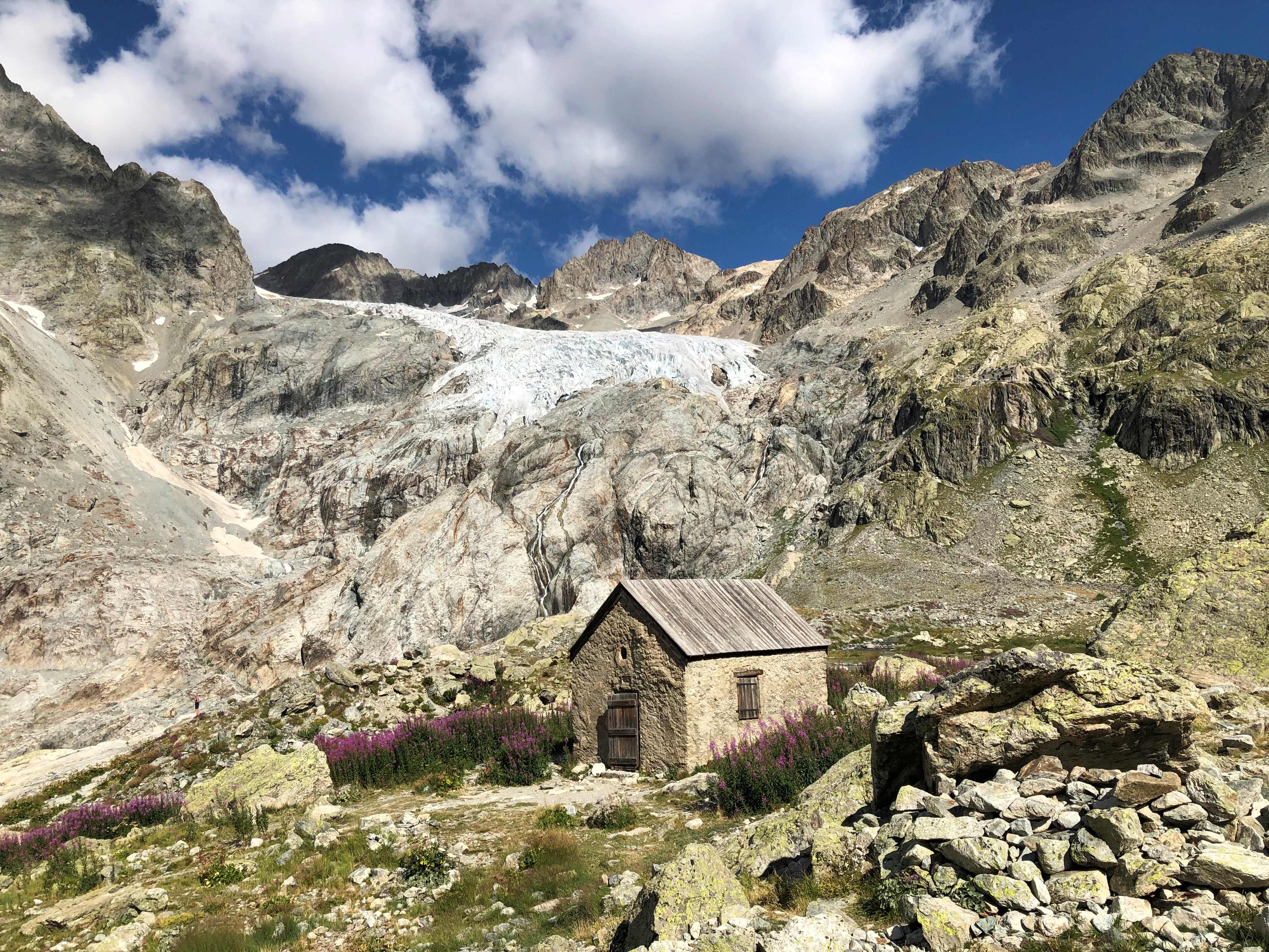 Le matin, au réveil, nous avons pris le chemin au-dessus du refuge, qui mène au refuge des Ecrins (pour les alpinistes). Il est bien moins tracé et assez abrupt, mais nous avons approché le glacier, et jouer à cache-cache avec les marmottes. Il est ainsi possible de continuer à marcher le long du glacier pour s’en rapprocher.