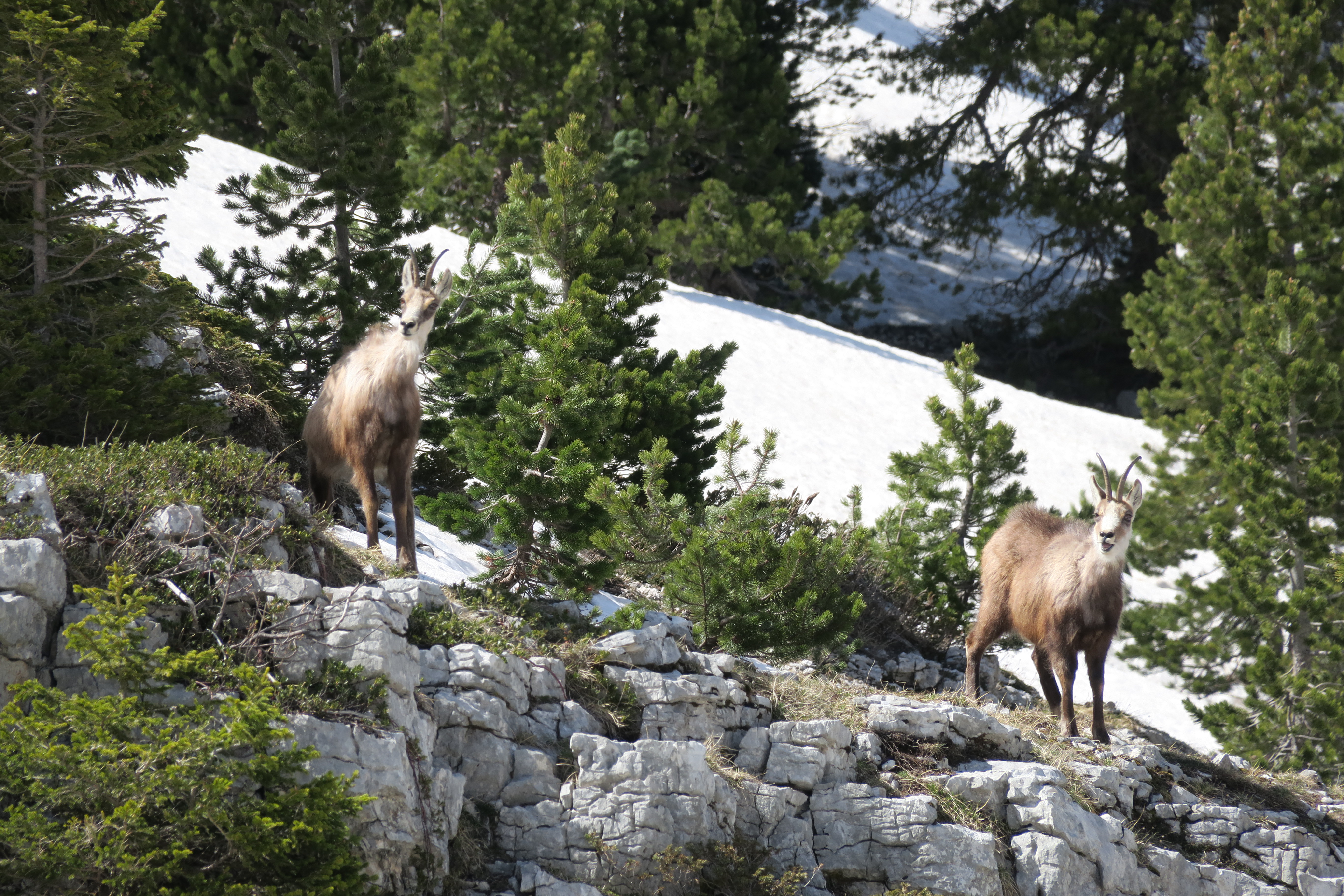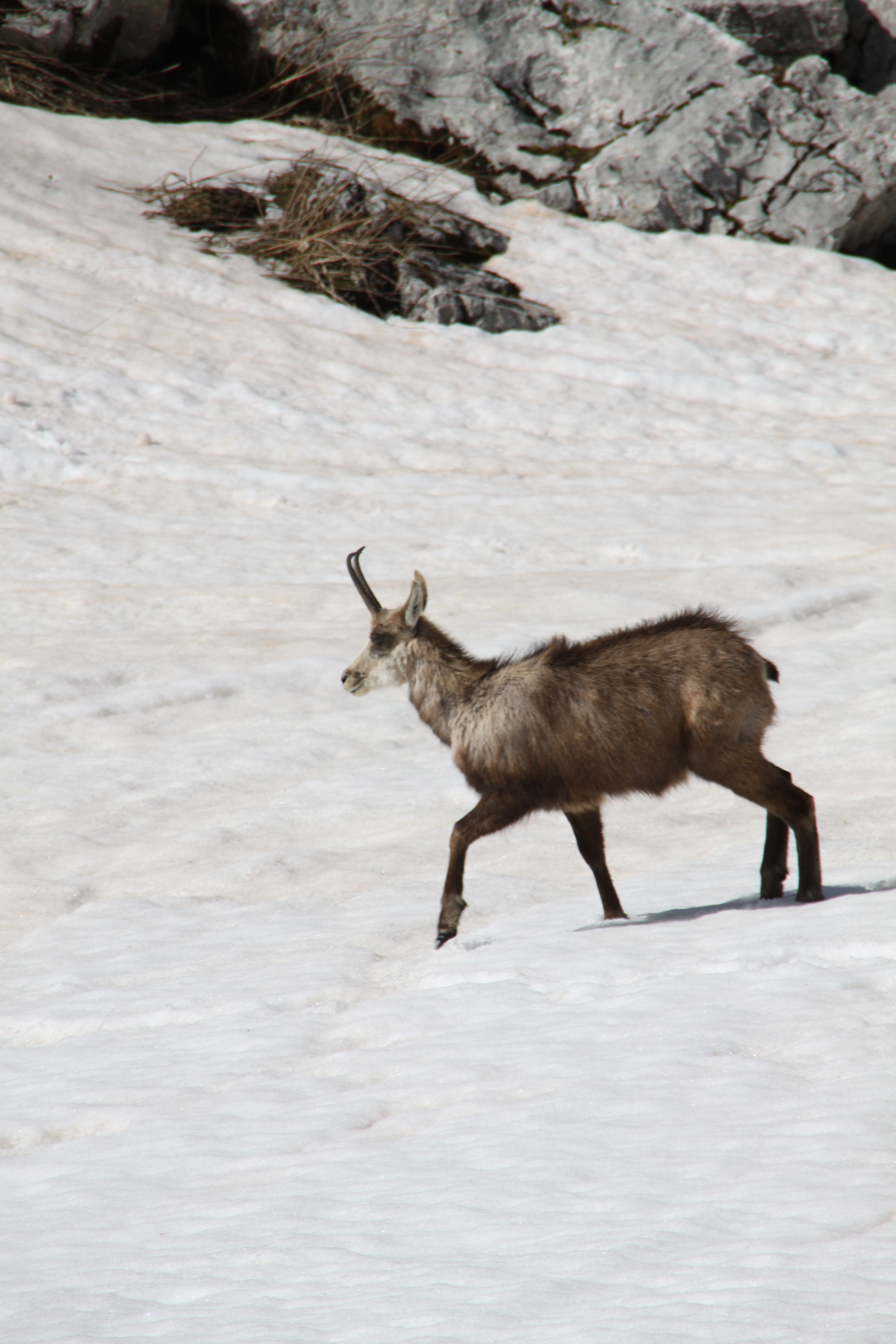 La neige est de plus en plus présente. Nous sommes sur les plateaux de la Chartreuse et les paysages sont magnifiques, avec un manteau de neige tout récent. La neige nous oblige à mettre les crampons. Si on avait eu les raquettes, cela aurait encore été mieux ! Nous croisons des animaux. Nous sommes désormais complètement seuls et ne croiserons personne jusqu’au Col de Bellefont.