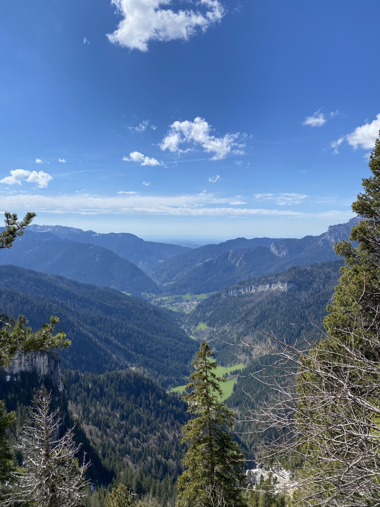 Nous nous rendons à deux voitures à Entremont-le-vieux où nous laissons une des deux voitures au parking de La Plagne (qui sera notre point d’arrivée), puis nous nous dirigeons vers notre point de départ le Col du coq. Nous arrivons via Saint-Pierre-de-Chartreuse, mais nous nous sommes bloqués au hameau la Brevardière en bas de l’accès au col du Coq par des barrières et un arrêté municipal interdisant l’accès à cette route en période hivernale ! Deux options : rejoindre le col du Coq via Grenoble, ou alors réaliser à pied la montée au Col du Coq. Nous retenons la deuxième option, mais nous savons déjà que nous allons faire chauffer les jambes puise la carte nous indique plus de 500m de dénivelé supplémentaire à travers la forêt. C’est parti ! La montée se fait comme prévu dans la forêt, sur un chemin qui offre de rares vues sur les alentours.