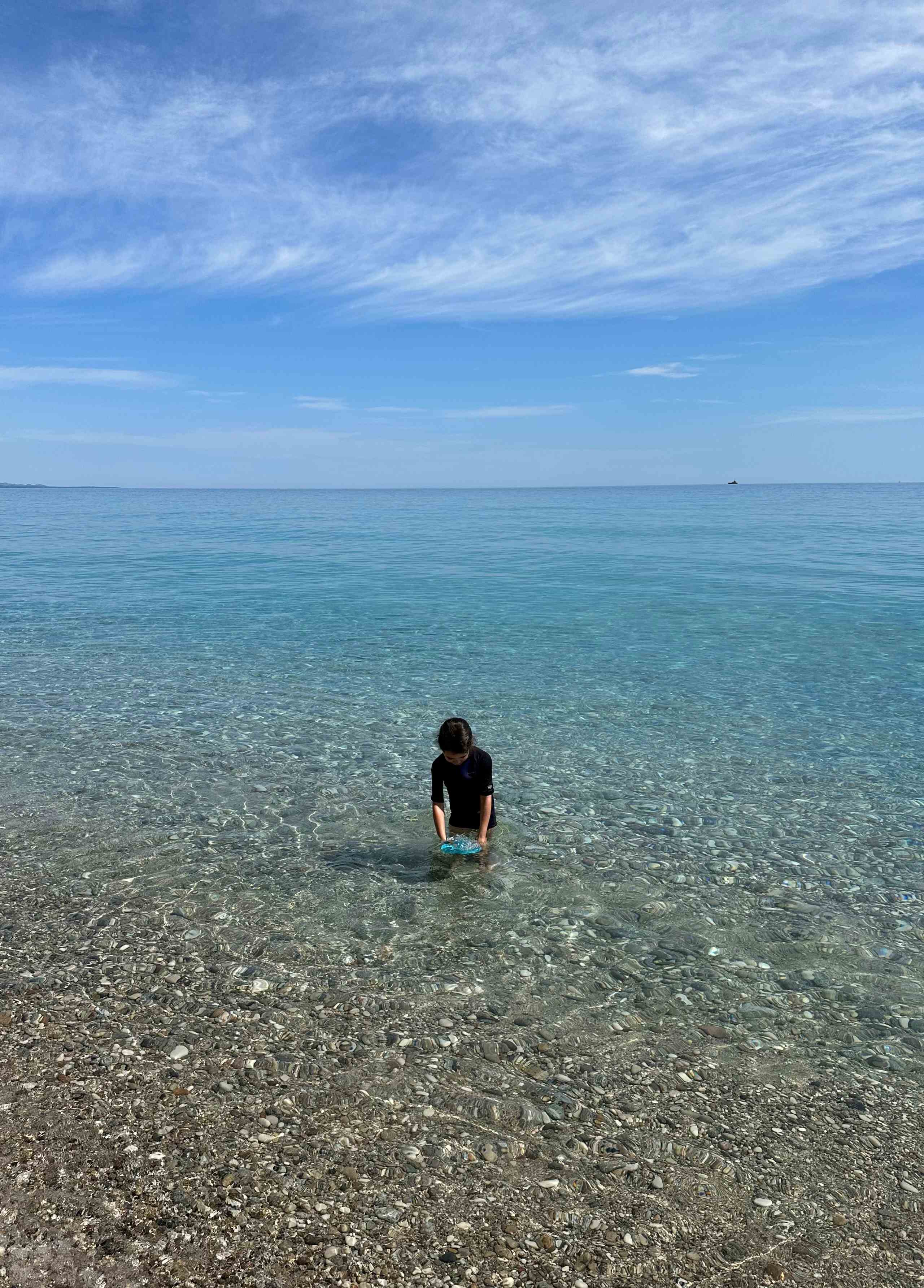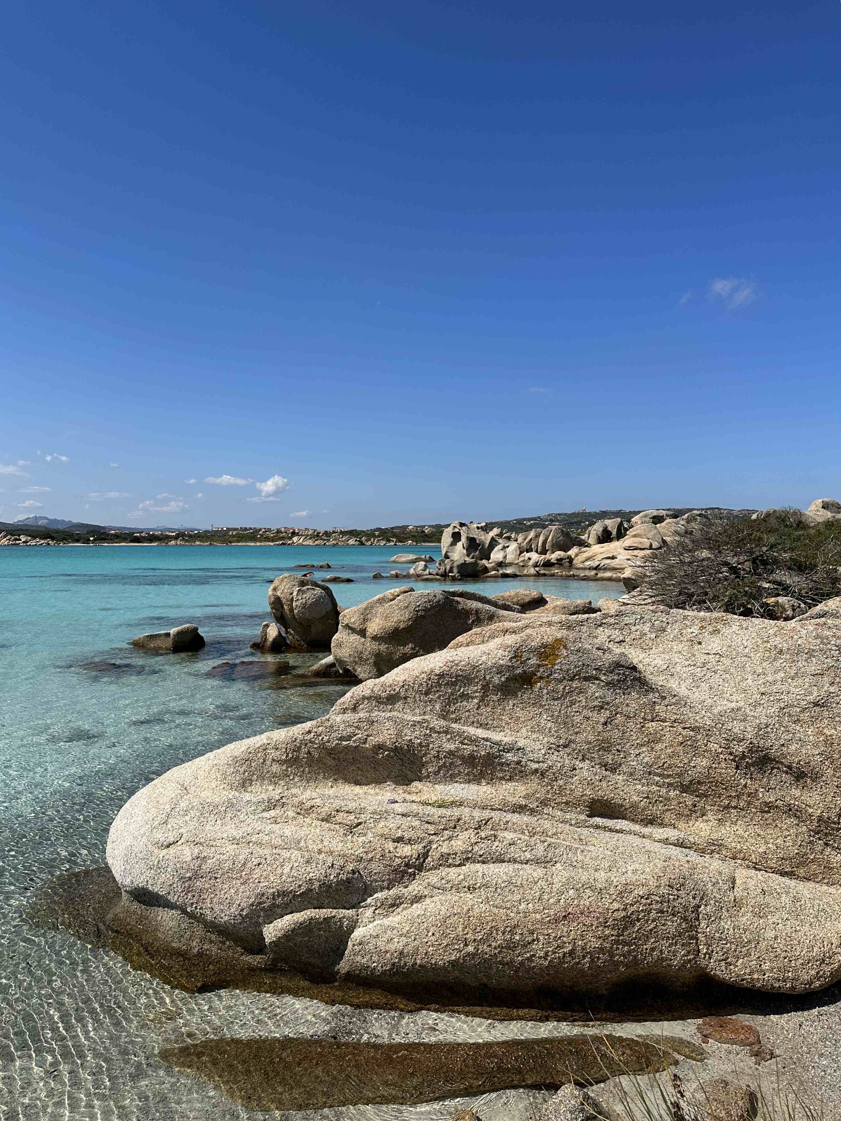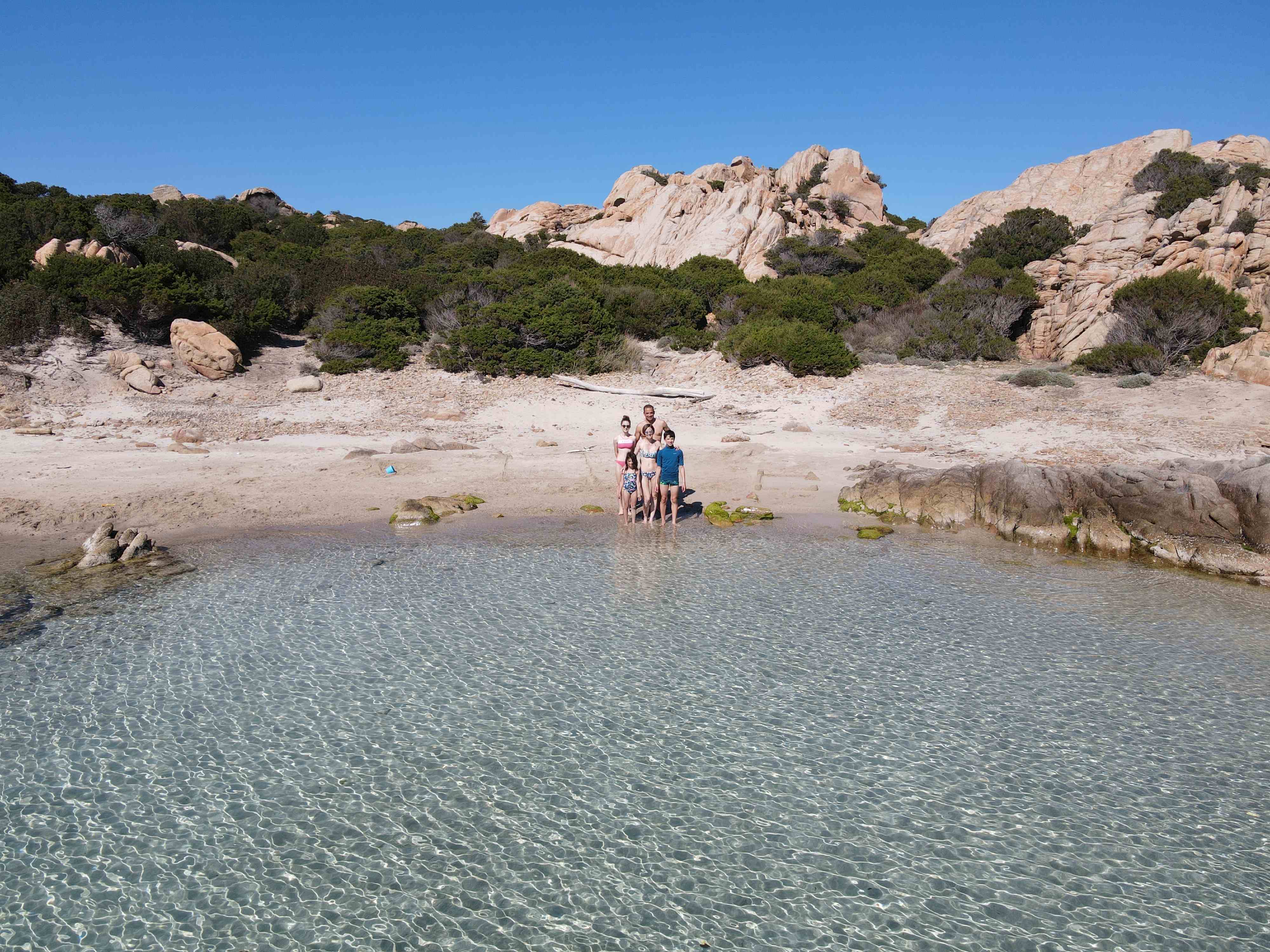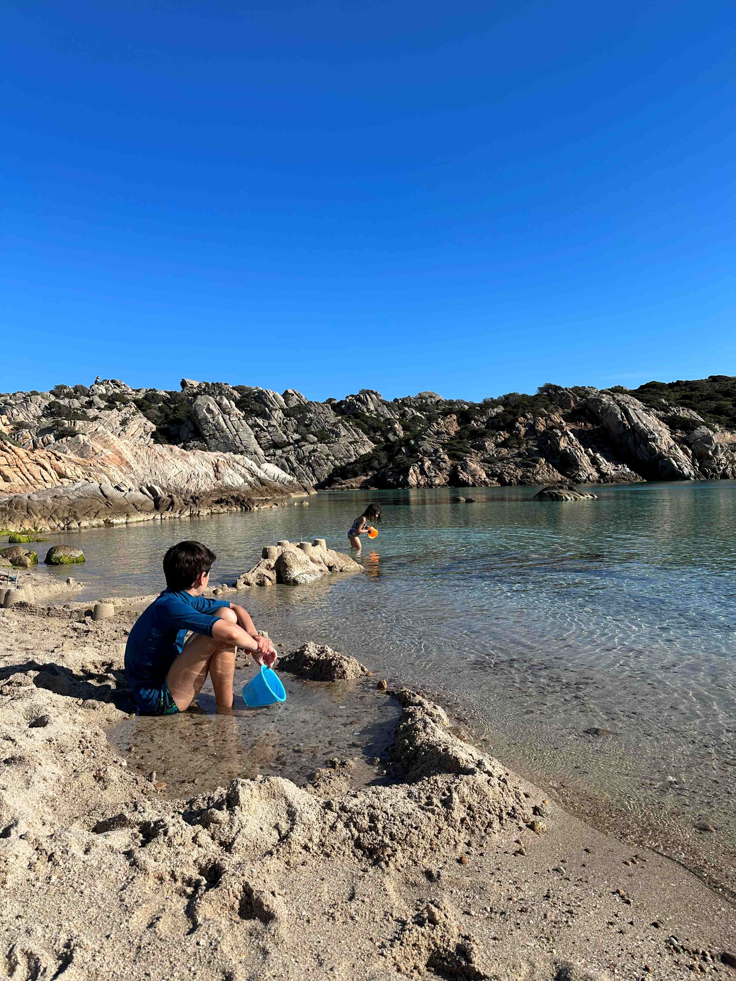Sur l’île Giardinelli qui est reliée à l’île principale de l’archipel par une route, se trouve une très très belle plage : Spiaggia Testa del Polpo. Elle est accessible en voiture ce qui fait qu’il y avait davantage de monde. Elle mérite quand même le détour ! C’est une petite langue de sable entre 2 plages, entourée d’autres petites criques de granite rose. Les rochers sont des zones de jeu infinies pour les enfants !