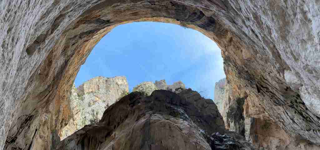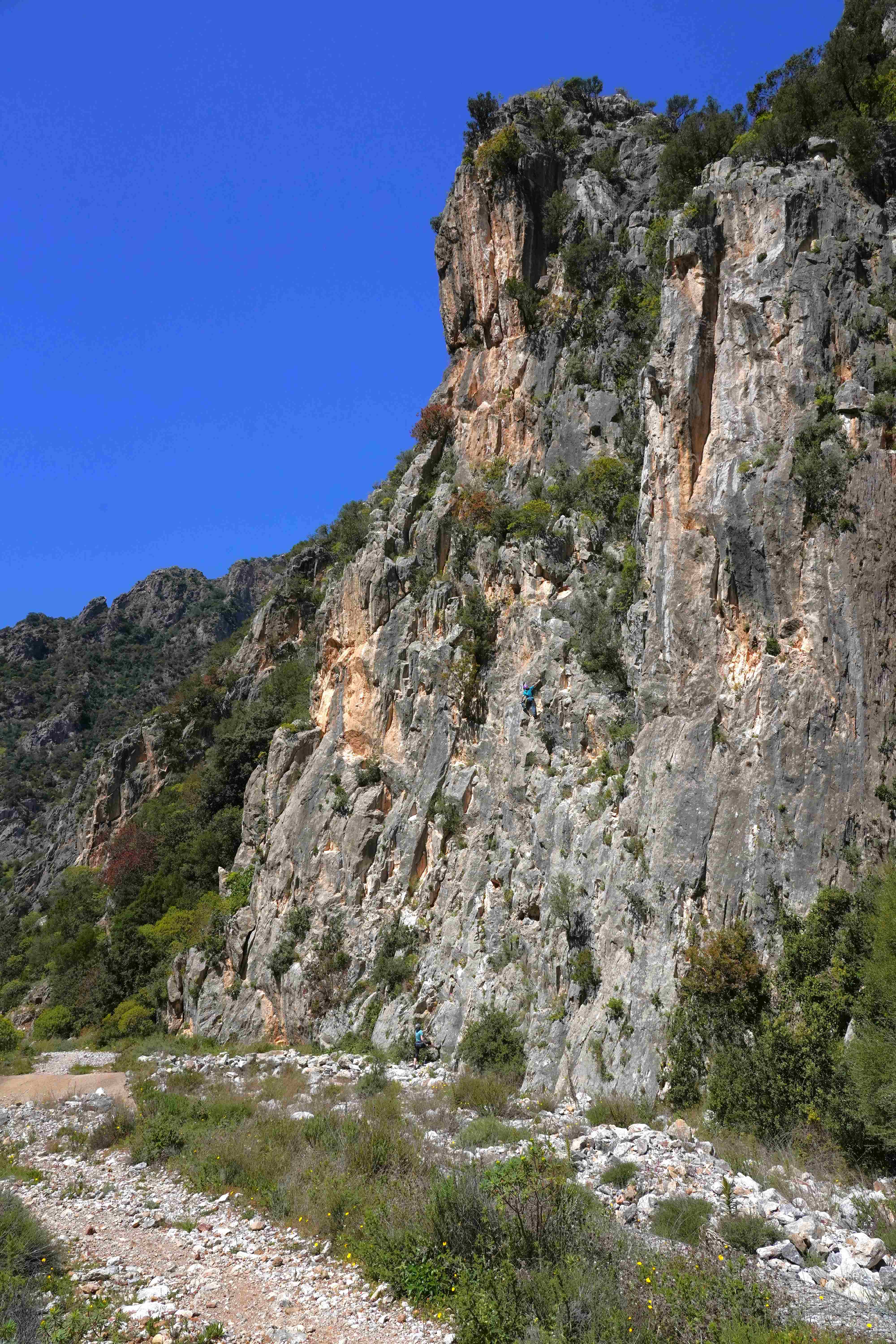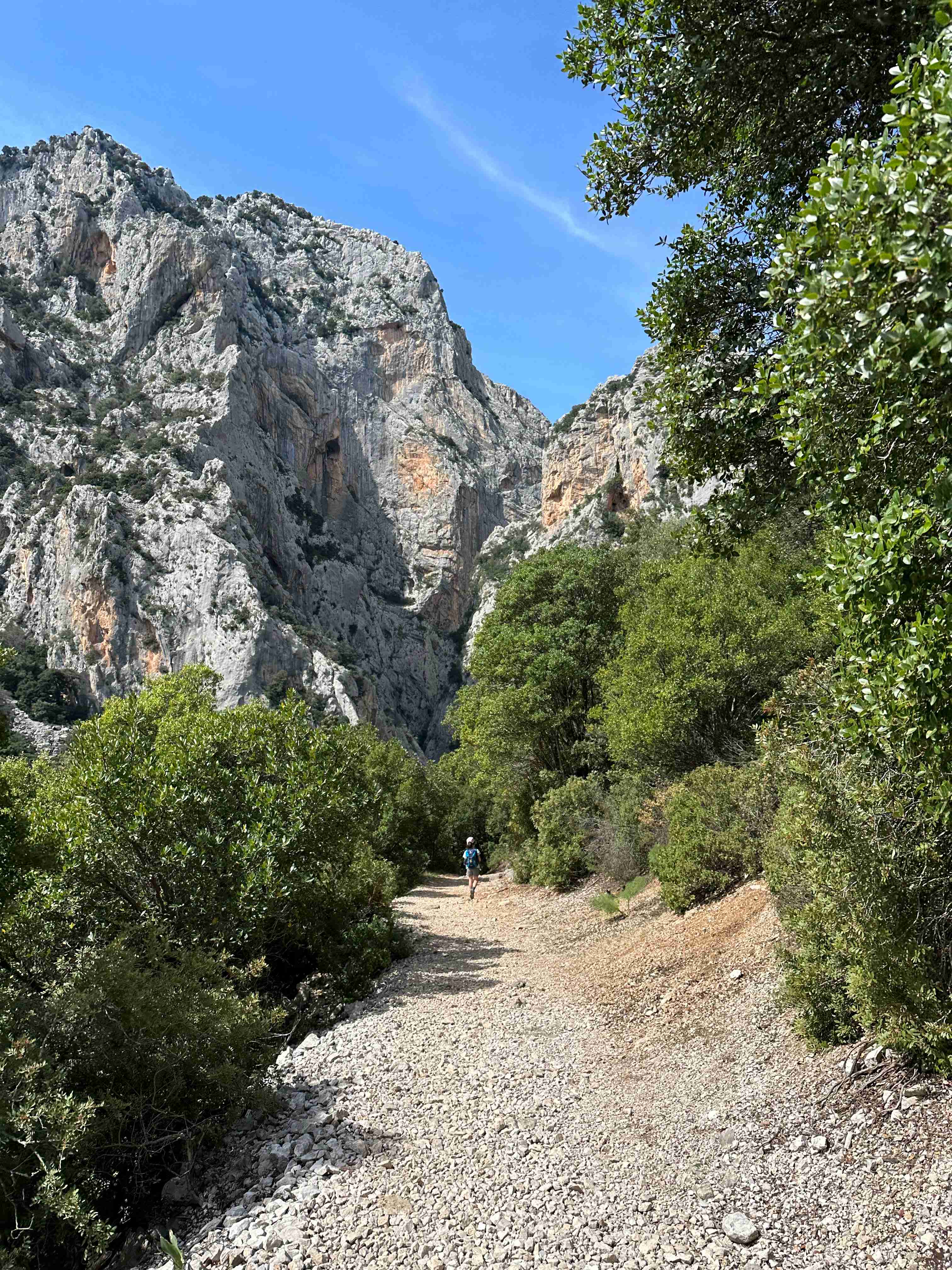 On oublie bien souvent que sur les îles, il n’y a pas que le littoral qui offre des pépites. Notamment il y a plusieurs possibilités de la balades autour de Dorgali. Si l’été ces randonnées doivent être difficilement praticables à cause de la chaleur, cette période s’avère parfaite (quoiqu’on a déjà eu bien chaud !). Nous avons opté pour une randonnée à la journée dans la canyon de Gorropu. Il s’agit d’une spectaculaire gorge karstique. Les parois sont très hautes, jusqu’à 300m. Par temps sec, il n’y a aucune eau dans le lit de la rivière. La balade est assez prisée et on a croisé un peu plus de personnes qu’ailleurs (une quinzaine). Il faut se garer au parking du bar « Su Sarva ». Le parking est censé être payant mais à cette période il ne l’était pas. Nous avons même pu dormir sur place en demandant l’autorisation. De ce parking, part également une randonnée vers le Monte Tiscali. Pour le canyon, il faudra d’abord parcourir un sentier en contre-haut d’un ruisseau, à travers la forêt et le maquis. Ensuite on arrive à l’entrée de la gorge, où il faudra s’acquitter d’une petite redevance (5€ pour adulte et 3,5€ enfant). Prévoir environ 4h AR pour parcourir les 14km de la balade et les 360m de dénivelé (fichier GPX).