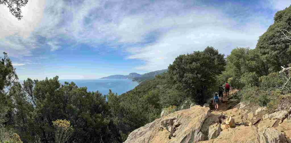 On peut accéder depuis Cala Fuili à Cala Luna qui n’est elle, pas accessible par la route. Pour y accéder, ce sera donc à pieds, ou en bateau au départ de Cala Gonone un peu plus au nord. Pour notre part, nous avons fait l’aller à pied, et le retour en bateau. La balade aller-simple fait un peu moins de 6km, 200m de dénivelé et nous l’avons parcourue en 1h50 (tracé GPX ici). Le sentier longe le littoral mais n’offre que peu de vues sur la mer. Par contre l’arrivée sur Cala Luna est très belle. Pour le retour en bateau, à cette saison, il y en avait un par heure et on peut acheter les billets directement sur la Cala Luna.