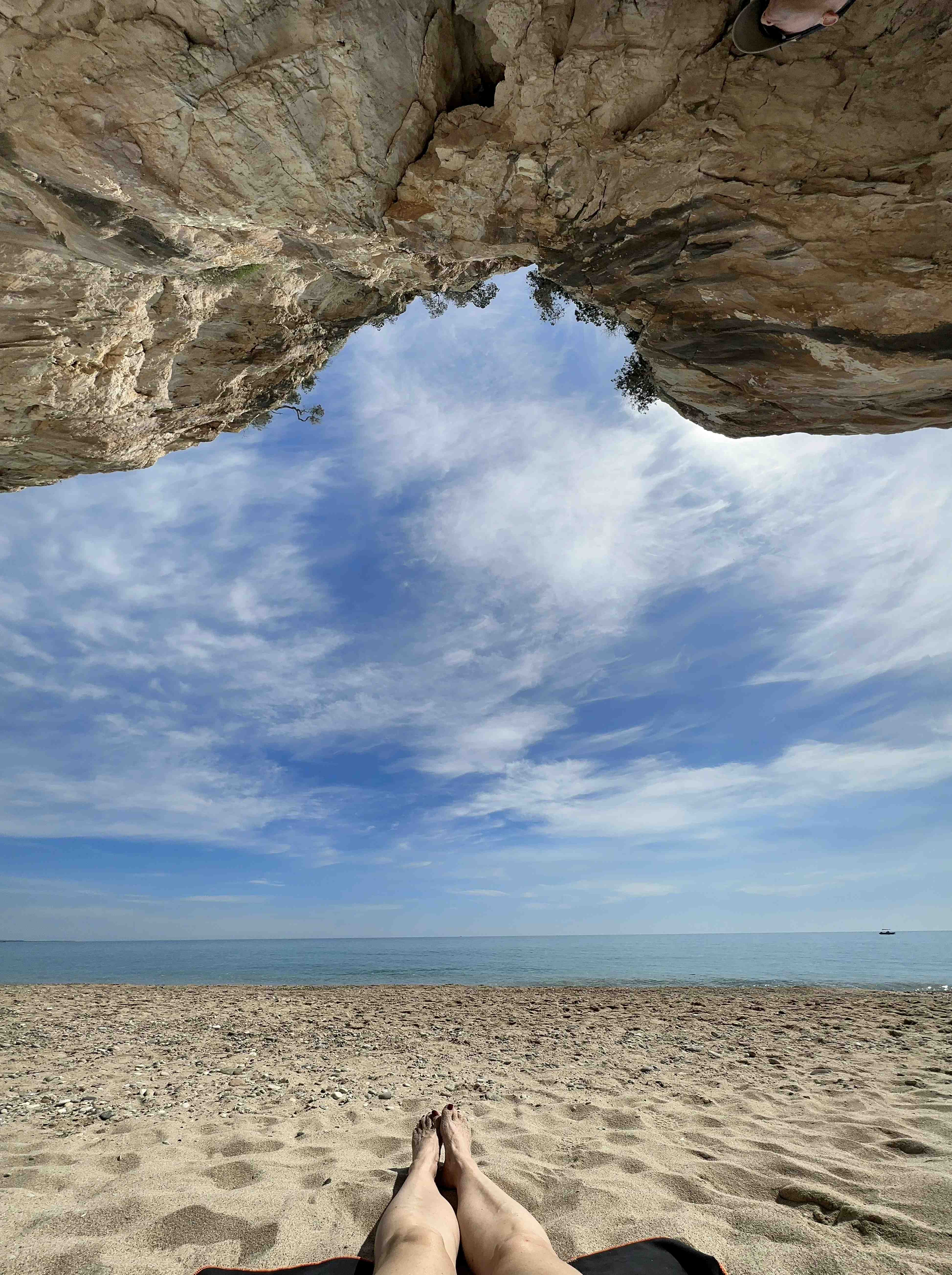 La plage est surtout connue pour ses immenses falaises calcaires creusées par endroit très photogéniques. A cette époque, la plage est assez calme, et en s’éloignant un peu vers les grottes, on est tous seuls. Ce ne doit évidemment pas être la même chose en été. Le revers de la médaille en avril c’est que l’eau est G-L-A-C-E-E ! Non, je n’exagère pas, elle était à environ 13°C !! Le lieu est parfait pour faire une petite pause et une petite baignade après la balade à pied, en attendant le prochain bateau. Si vous hésitez entre le retour à pied et en bateau, sachez que la balade en bateau permet de donner un point de vue très différent sur la plage et d’apprécier de loin les grottes.