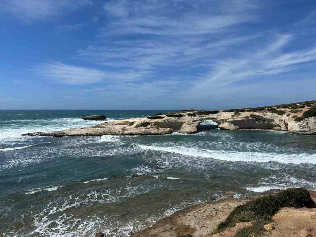 Au niveau de la petite station balnéaire S’Archittu, on peut admirer une arche géante creusée dans la roche. Cela ne vaut pas le détour, mais si vous passez par là, prenez le temps d’aller vous promener sur ces grands rochers. Nous y sommes allés par un temps très venteux et frais. Mais il est possible de se baigner ou de faire du kayak sous l’arche par temps calme.