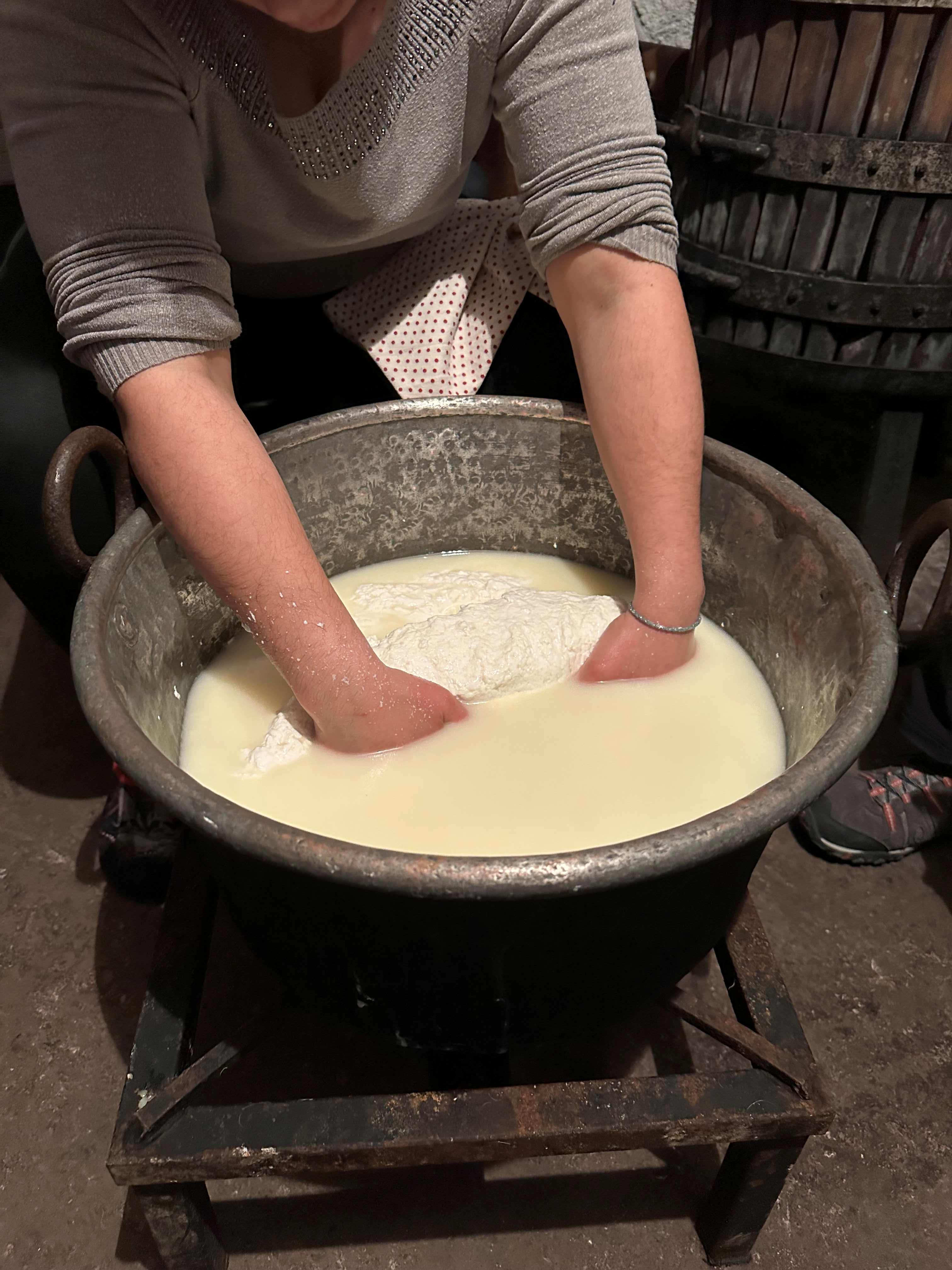 Nous avons opté pour une activité trouvée sur Airbnb qui était toute nouvelle et qui promettait de découvrir comment le pecorino était fabriqué. Nous n’avions jamais testé de réserver une activité par la plate-forme, mais cela paraissait être assez authentique. Nous nous sommes rendus au village médiéval de Santu Lussurgiu, qui est situé dans l’ancien cratère d’un volcan, pour aller à la rencontre d’Arianna et son mari qui sont des fermiers passionnés. Une partie de leur exploitation se trouve en plein centre du village ! Nous avons pu assister à la fabrication du fromage pecorino sarde, tout en dégustant des produits locaux (sans oublier l’alcool local !!). Arianna avait vraiment à cœur de nous partager leurs traditions et leur envie de poursuivre à produire ces produits locaux malgré les difficultés.