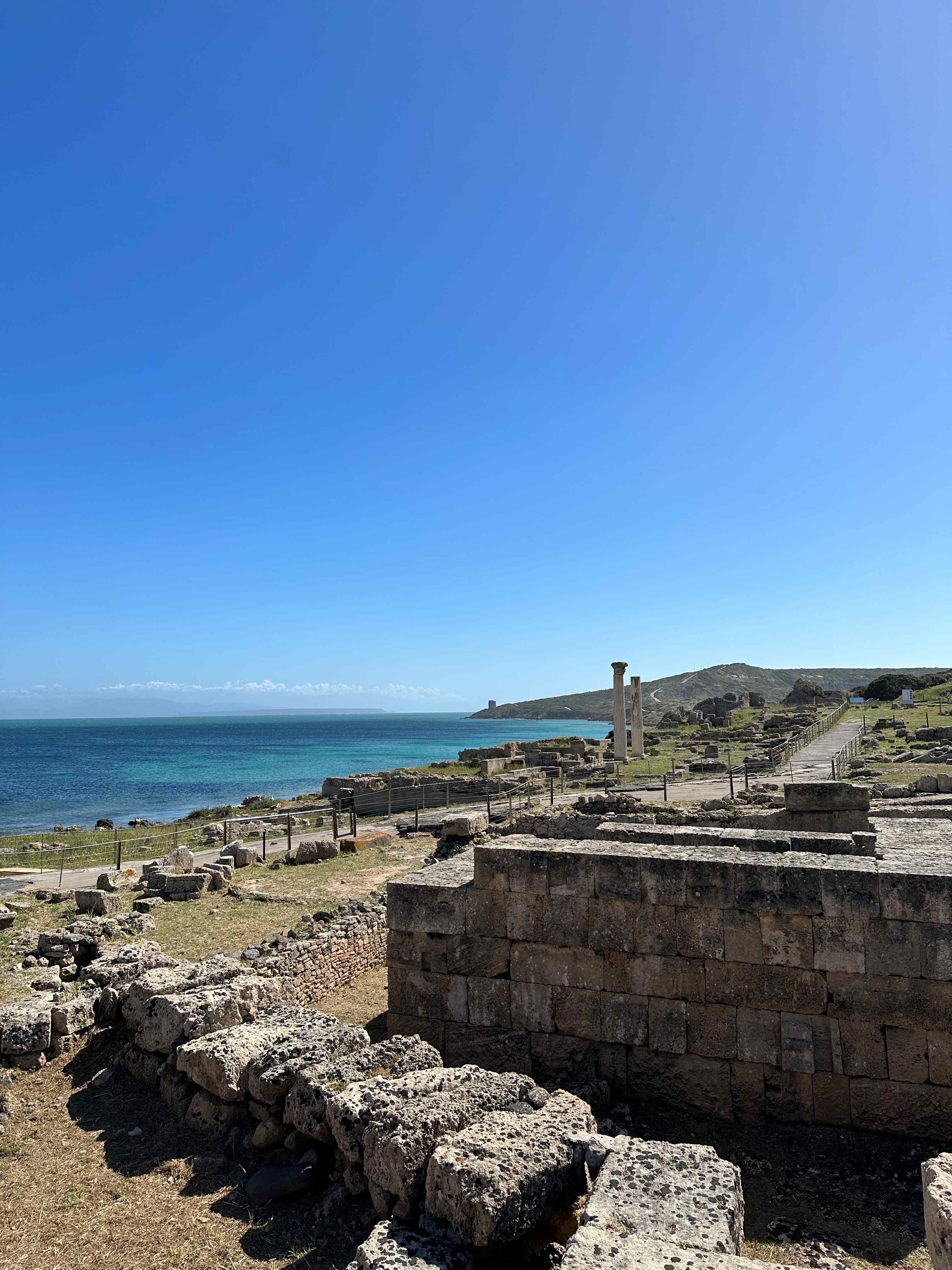 Tharros, fondée par les Phéniciens, fut l’un des ports de commerce les plus importants de Méditerranée. Passé sous domination romaine plus tard, la zone a ensuite été ruinée. Il n’en reste pas grand chose, mais suffisamment pour s’imaginer le passé : les restes d’un village, de thermes et d’un temple.